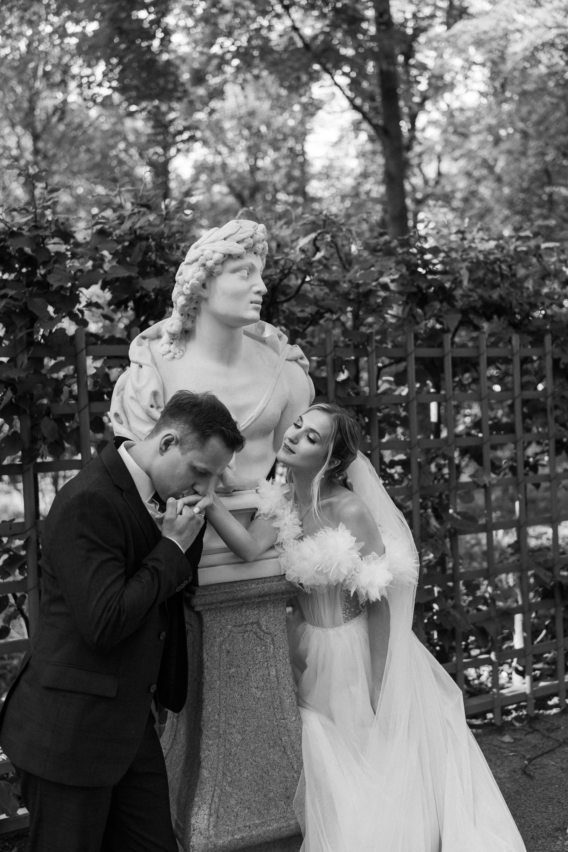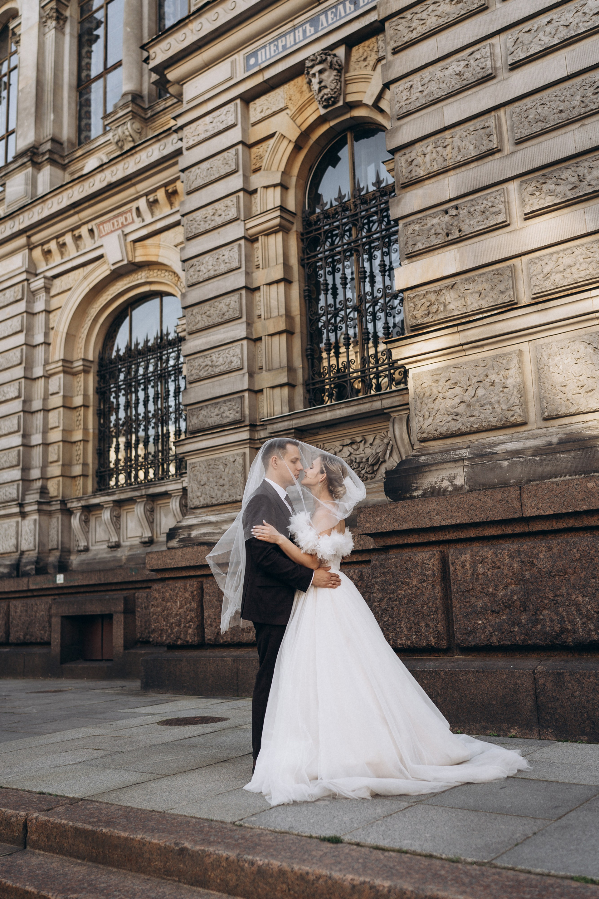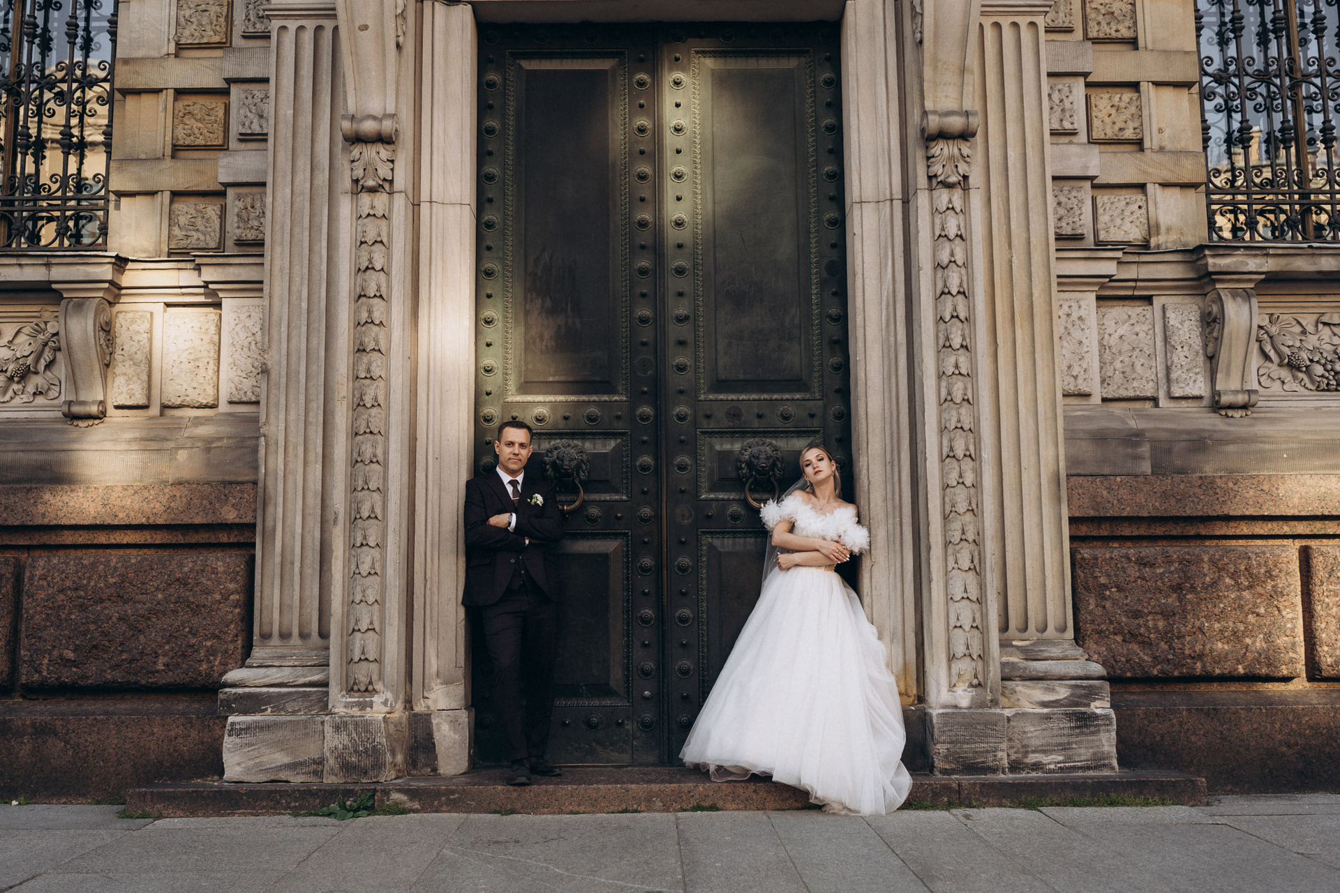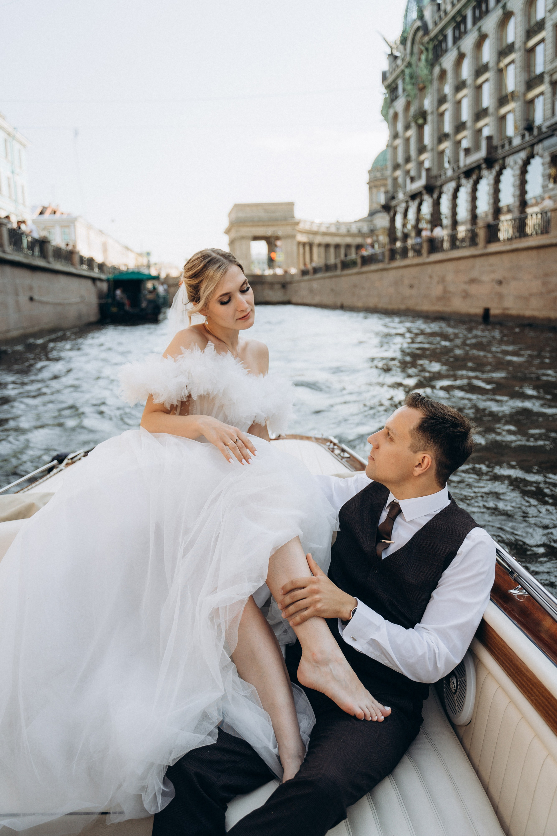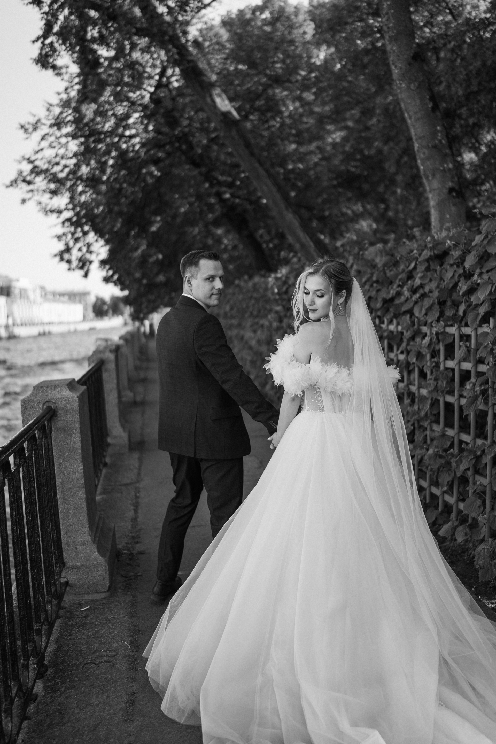 Всё самое важное: трогательные совместные сборы, волнительная первая встреча в свадебных нарядах, регистрация в ЗАГСе Петроградского района, прогулка по Летнему саду, Академии Штиглица и главное прогулка на катере с видами на Петербург