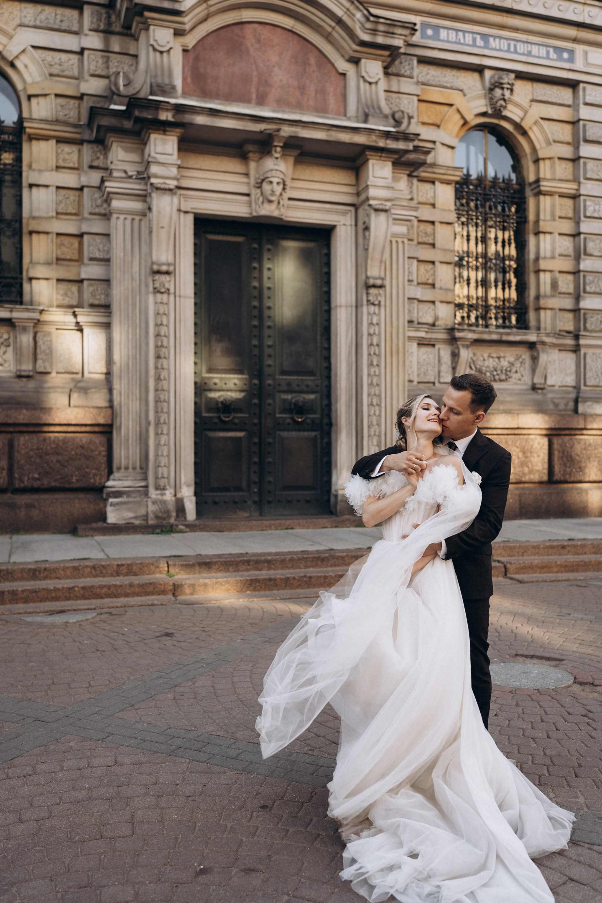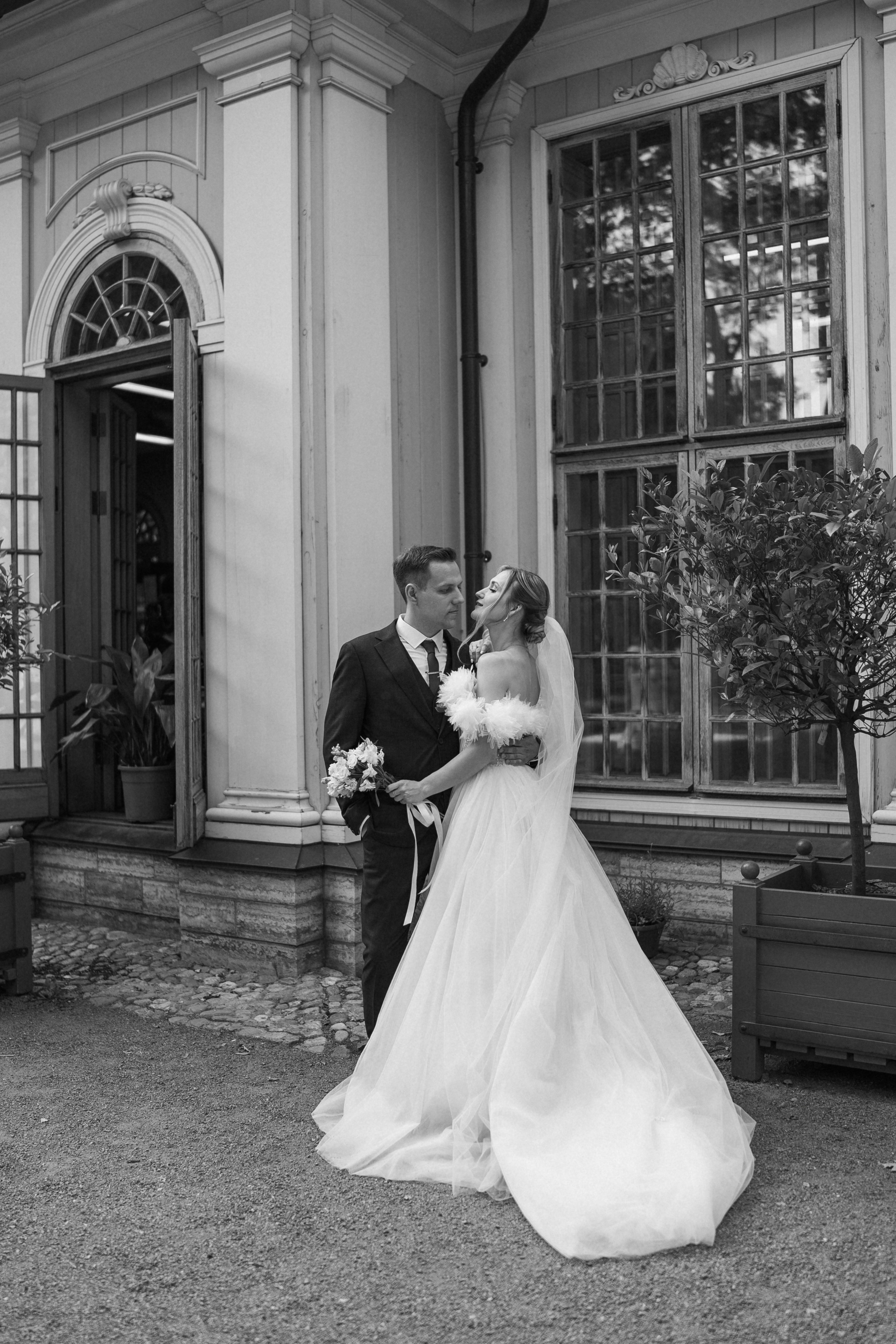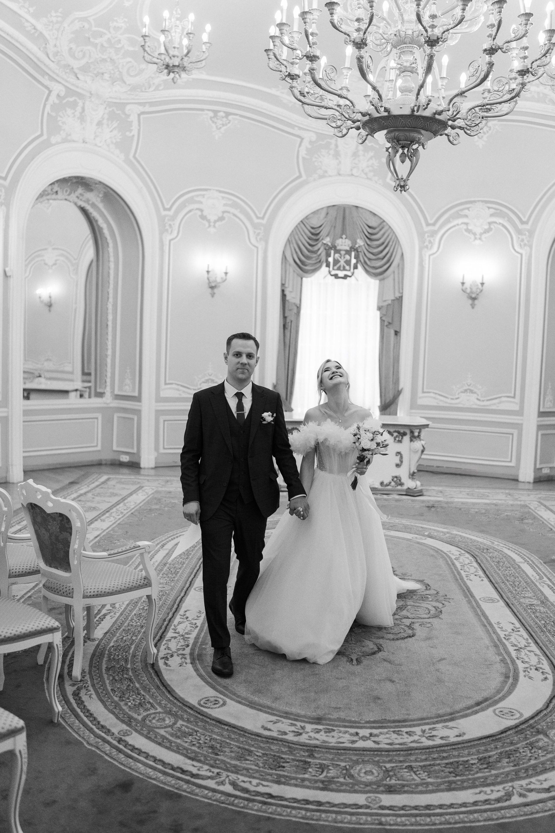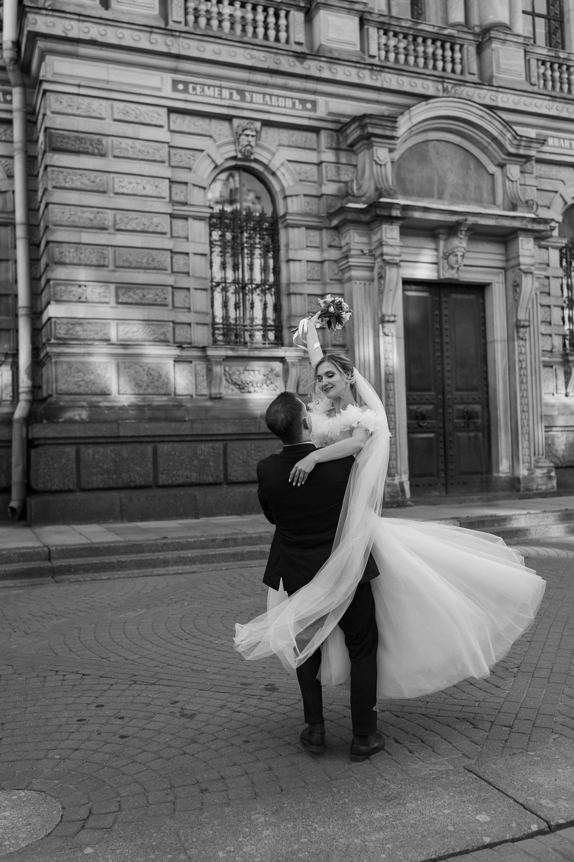 Всё самое важное: трогательные совместные сборы, волнительная первая встреча в свадебных нарядах, регистрация в ЗАГСе Петроградского района, прогулка по Летнему саду, Академии Штиглица и главное прогулка на катере с видами на Петербург