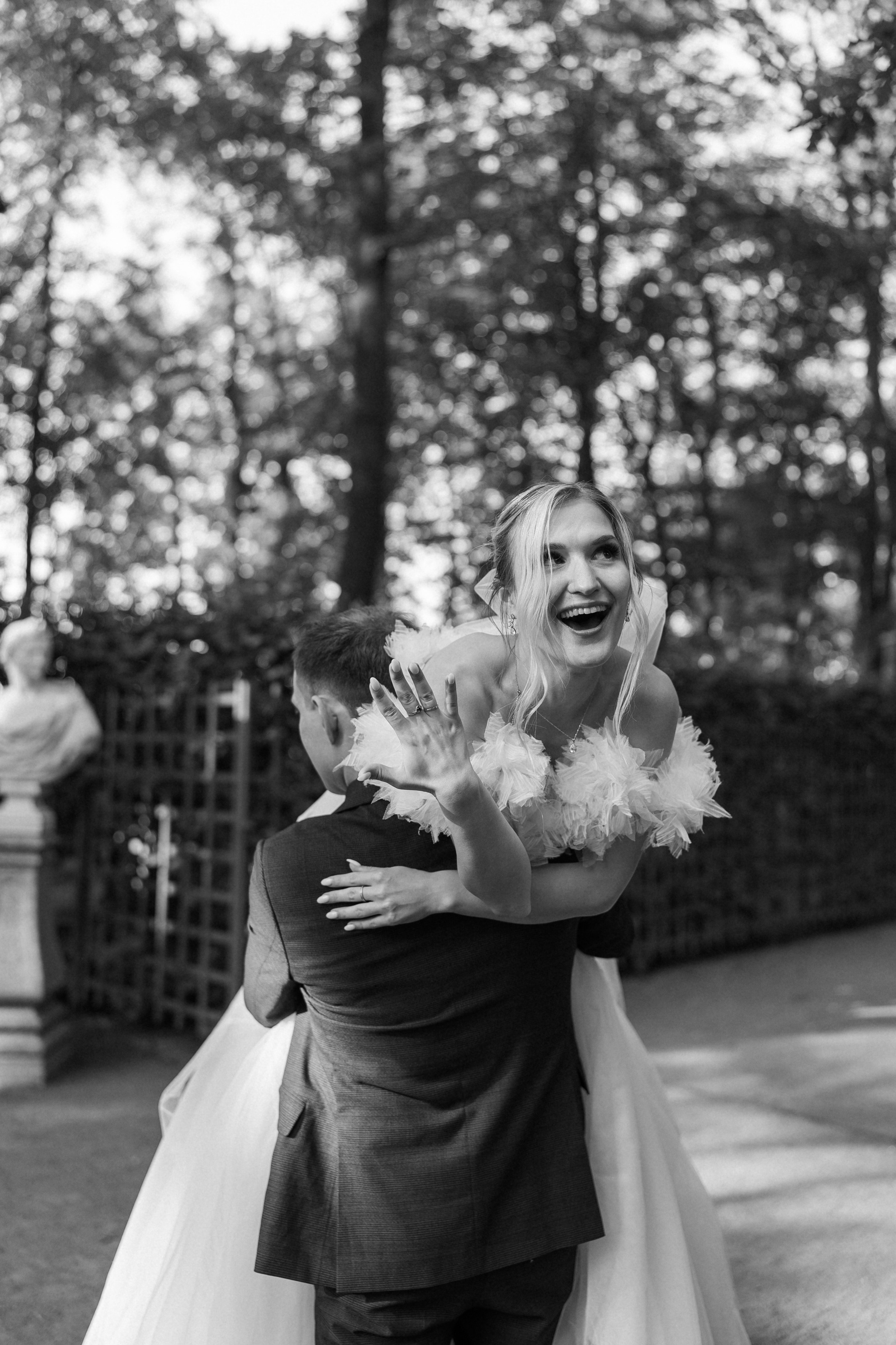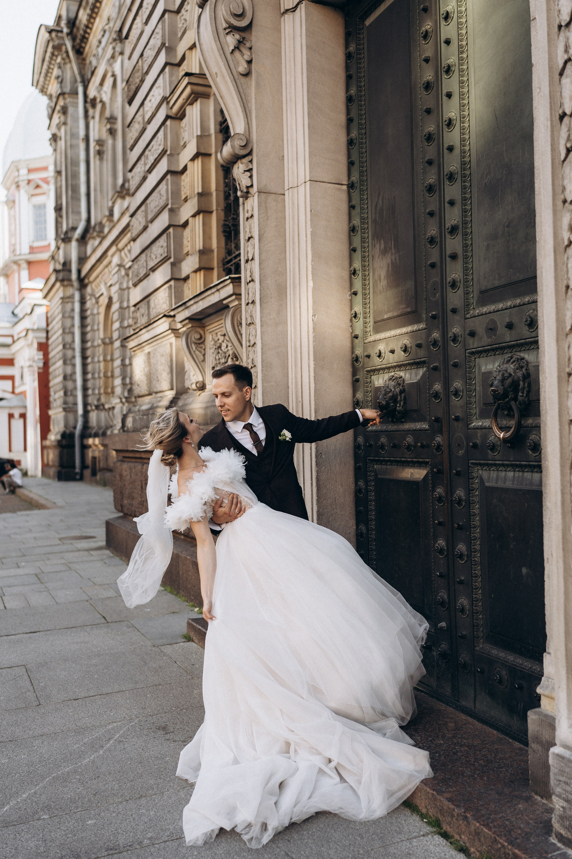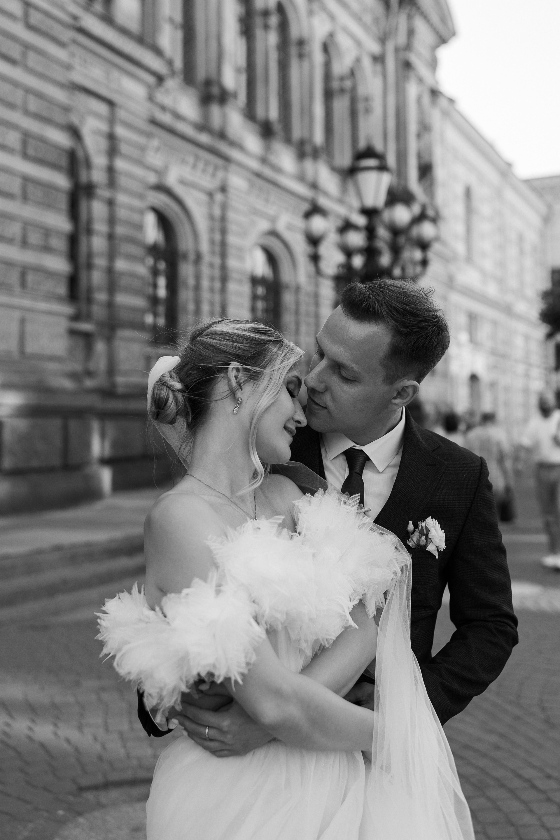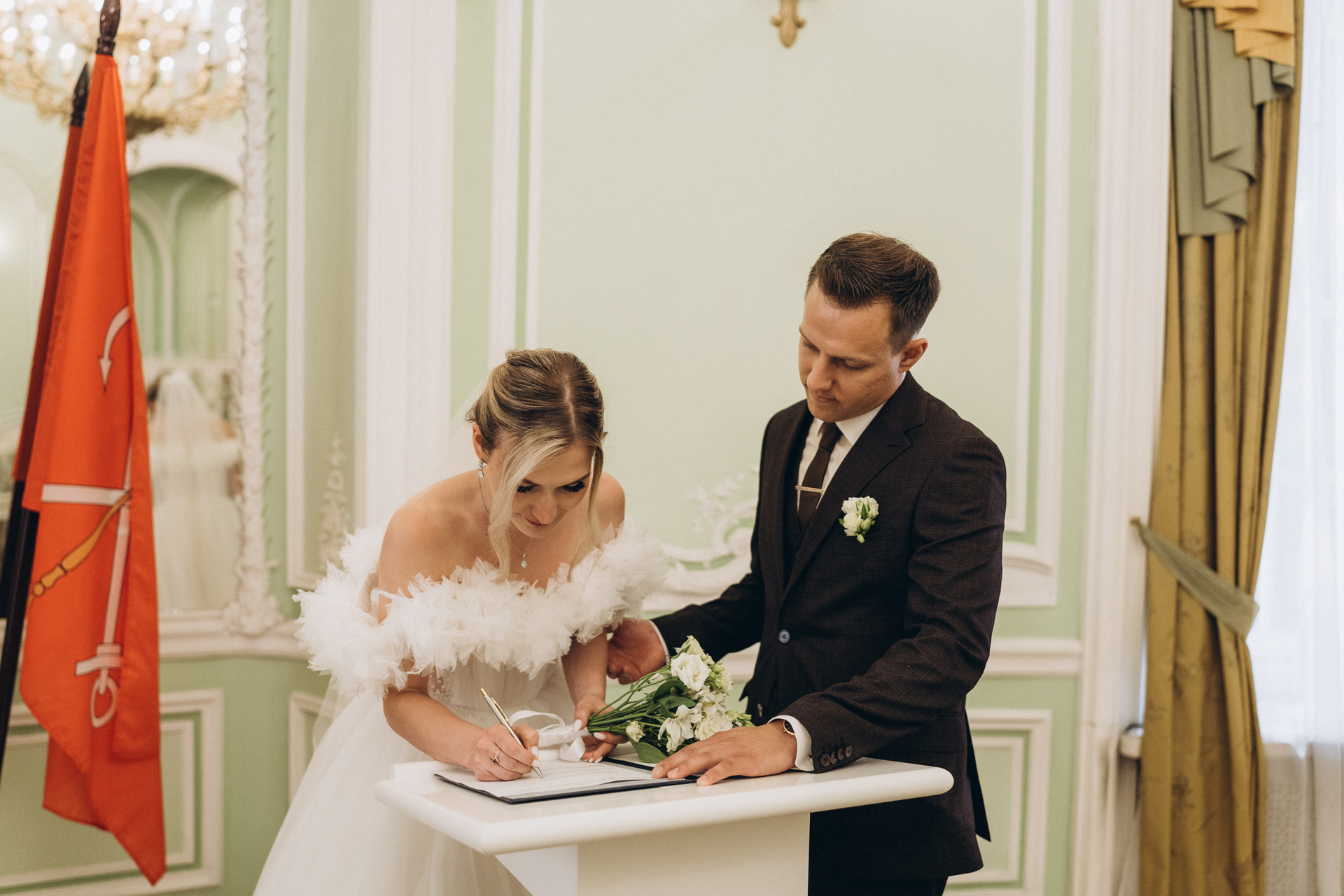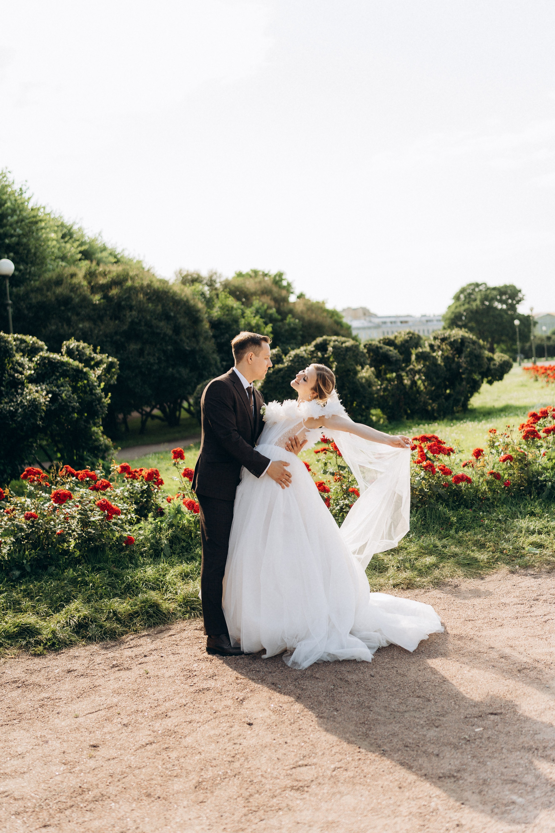 Всё самое важное: трогательные совместные сборы, волнительная первая встреча в свадебных нарядах, регистрация в ЗАГСе Петроградского района, прогулка по Летнему саду, Академии Штиглица и главное прогулка на катере с видами на Петербург