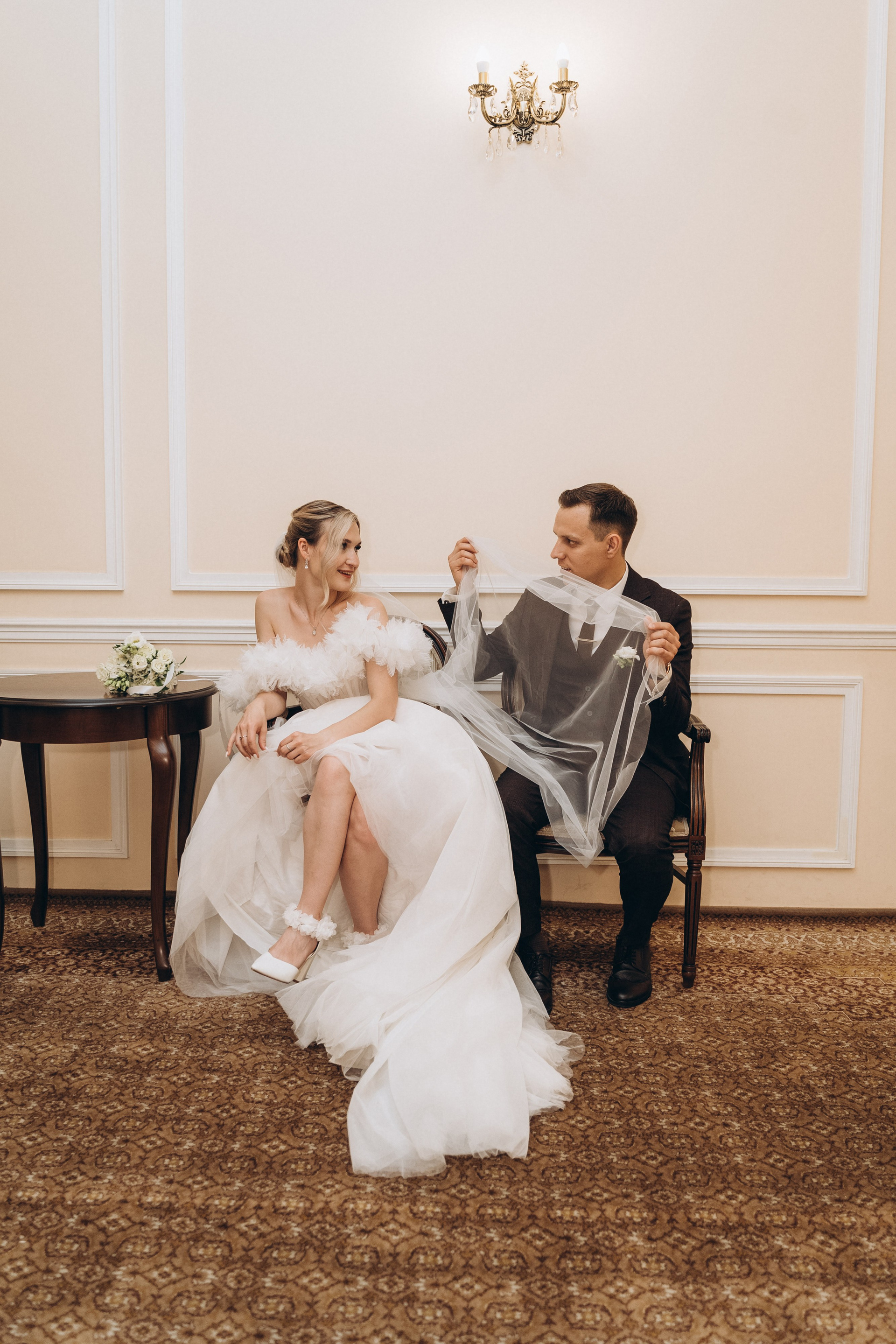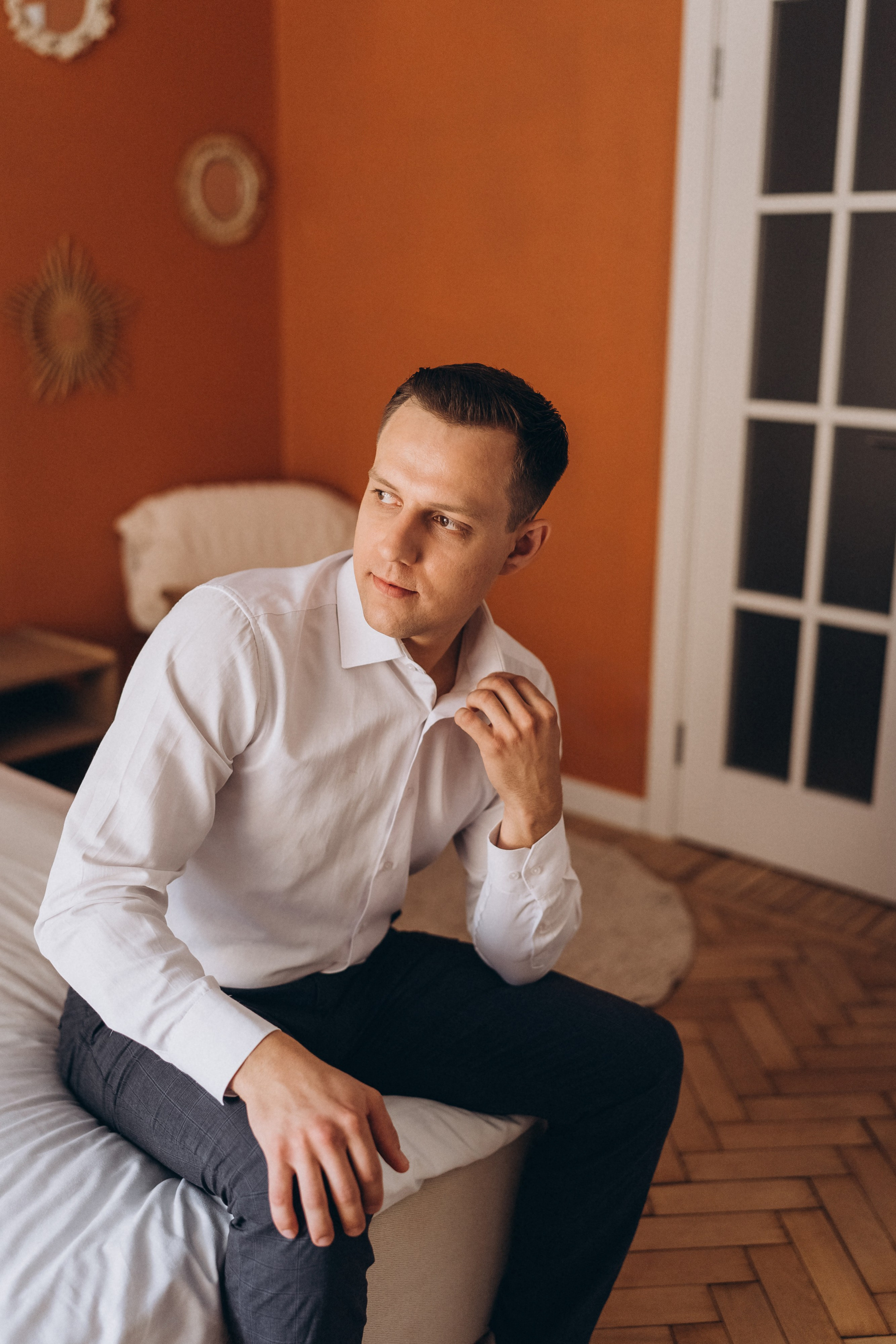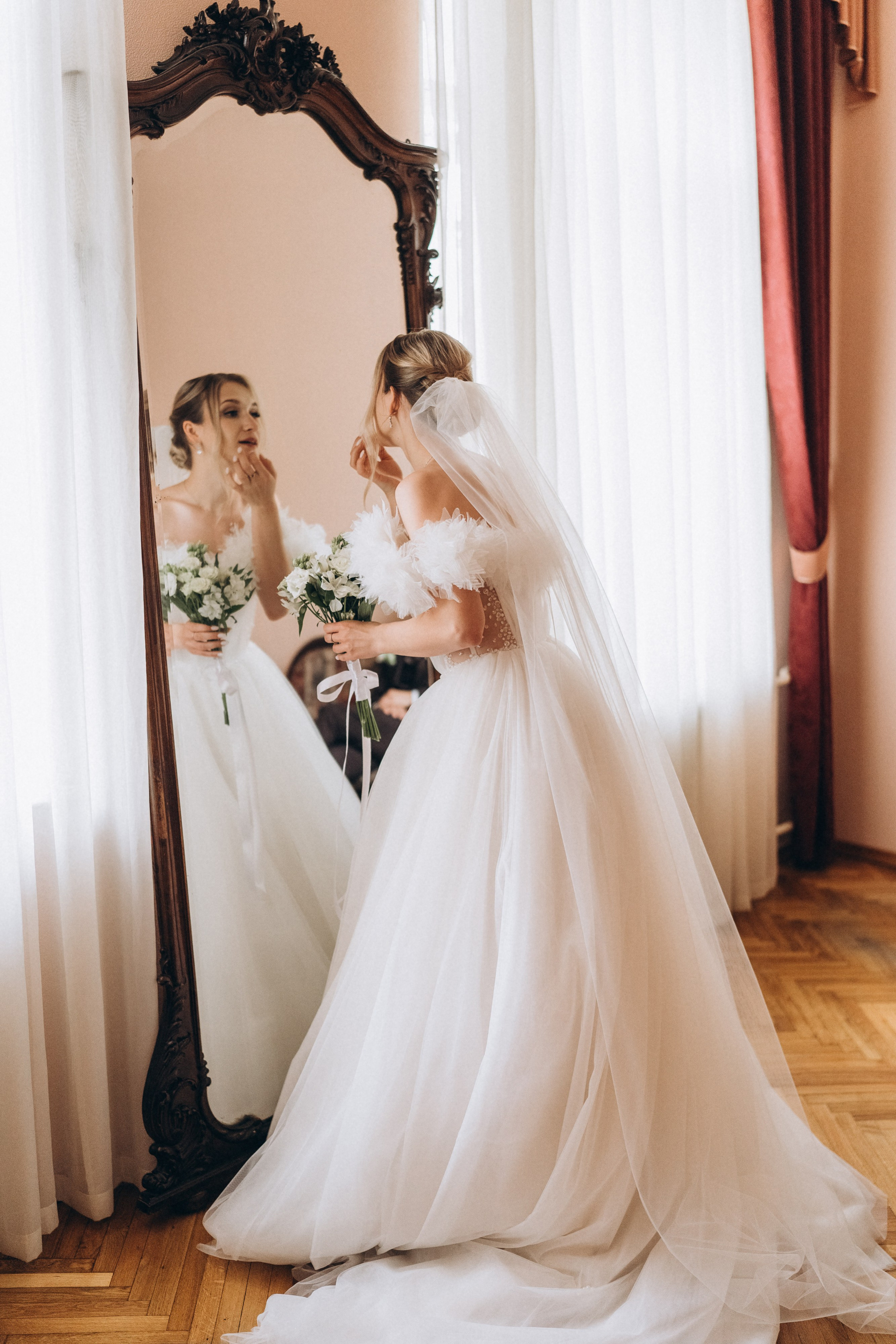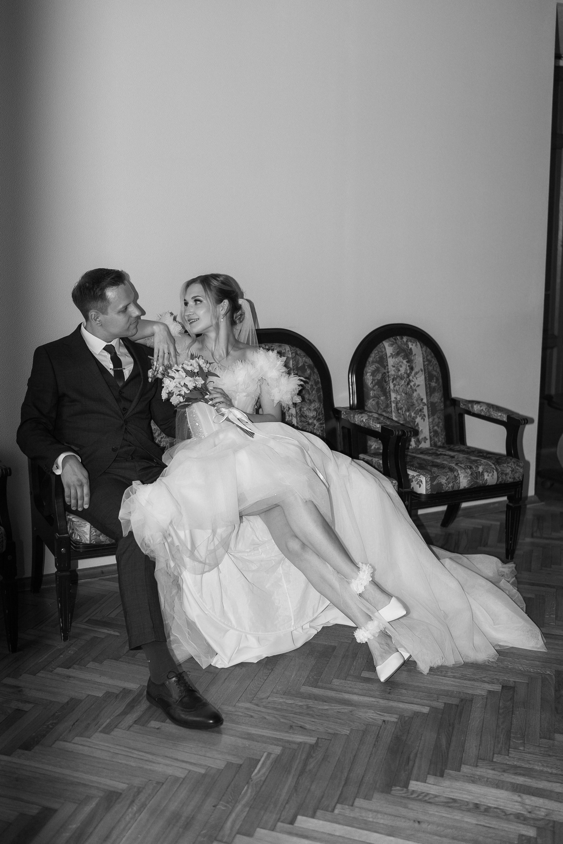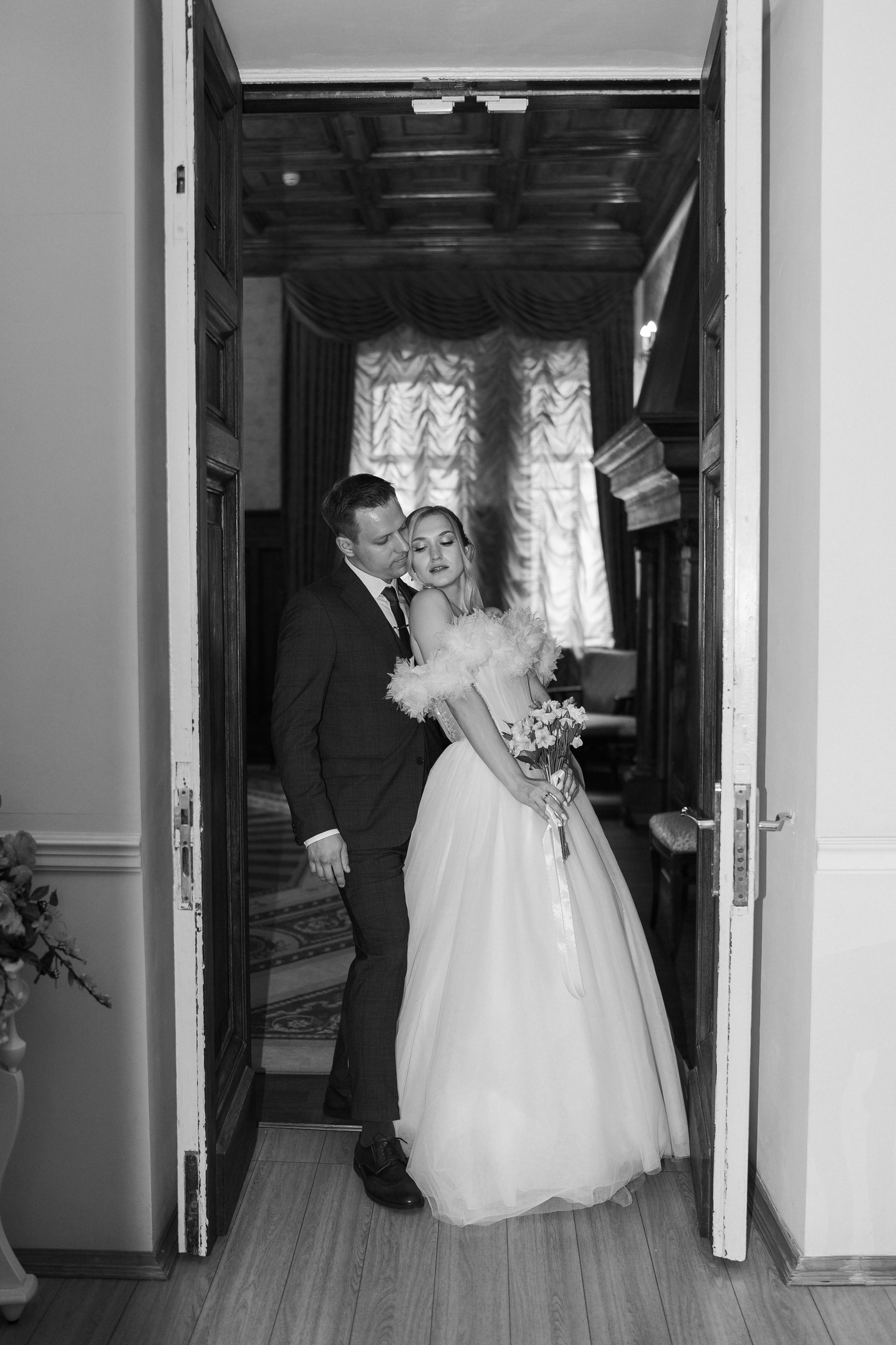 Всё самое важное: трогательные совместные сборы, волнительная первая встреча в свадебных нарядах, регистрация в ЗАГСе Петроградского района, прогулка по Летнему саду, Академии Штиглица и главное прогулка на катере с видами на Петербург